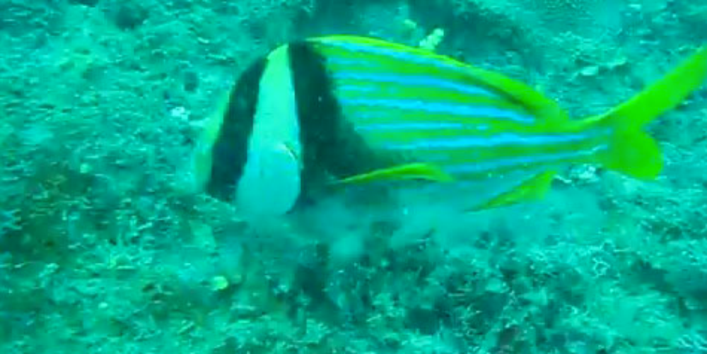 Swimming with colorful fish on a scuba diving tour in Puerto Viejo, Costa Rica.